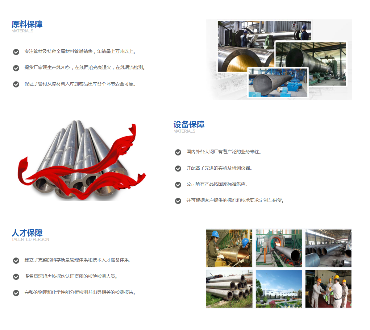 山東鑫盛鑫鋼鐵有限公司是一家專業銷售:無縫鋼管,合金管,異型管,精密管,圓鋼,軸承鋼的大型無縫鋼管廠廠家。可定做,多種規(guī)格,多種型號的無縫鋼管。另常年兼營成都、包鋼、冶鋼、魯寶、鞍鋼、安陽、洪都、天津等幾大鋼廠的國產進口的無縫鋼管、無縫管、流體鋼管、直縫焊管,經營品種多、規(guī)格齊全,保質保量,常年庫存保有量7000噸以上。所售產品均執(zhí)行國家標準,適用于工程、煤礦、紡織、電力、鍋爐、機械、軍工等各個領域。公司始終堅持“公正、客觀、科學、誠信”的經營原則,重合同、守信譽、保質保量、按期交貨”。多年來公司憑借良好的信譽、優(yōu)質的產品、低廉的價格享譽全國30多個省、市、自治區,產品出口歐洲、南美等十多個國家,深得用戶信賴! 常備材質:20#、45#、20G、16Mn、27SiMn、12Cr1MoVG、15CrMo、T91、10CrMo910、STFA25(P5)、STFA26(P9)、P11、P12、A335P91、A335P92、WB36[15NiCuMoNB5]、鋼研102(12Cr2MoWVTiB)等。執(zhí)行標準為:結構管GB8162-1999、流體管GB8163-1999、低中壓鍋爐管GB3087-1999、液壓支架管GB17396-1999、高壓鍋爐管GB...